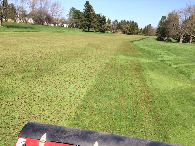The plugs that remain are allowed time to dry before dragging occurs. Shown below. This breaks up the plugs leaving thatch and planty material on the surface.