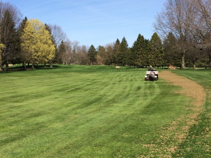 We have a tractor mounted unit “Toro 880” capable of aerifying 26 acres of Fairways by the end of the week. Thats 20 football fields!