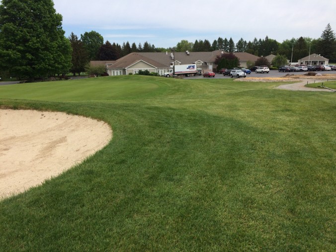 It was applied on Bunker and Green Surrounds. (One pass around) A darker, richer green is evident and with the added herbicide, and insecticide overall Turf Health has improved.