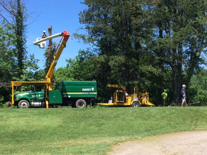 Tree Update: The last of the damaged Trees from March’s Wind Storm were cut down today. Stump Grinding is finishing up and pick-up and back-filling follows behind.