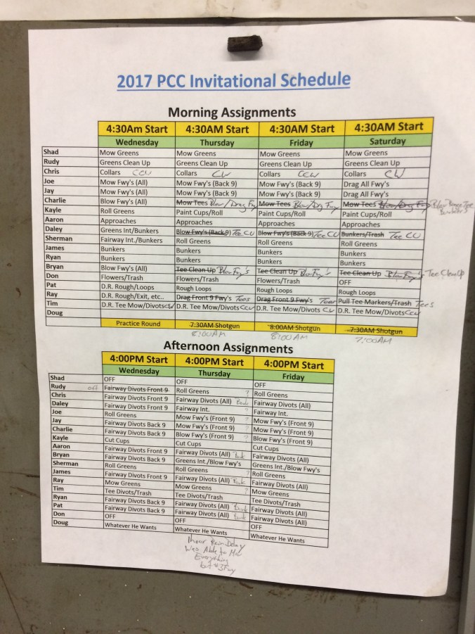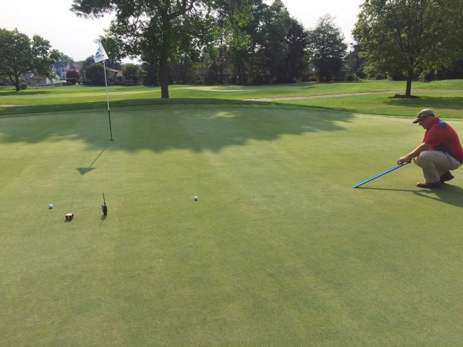 Morning and evening mowing/rolling on greens has been going on since Wednesday to create the smoothest/competitive putting surface possible.